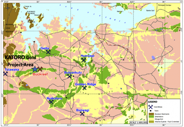 (Location Katoro Gold Project of the Lake Victoria GoldField greenstone belts in north-western Tanzania. Source: Cameo Resources Inc.)